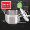 Simmer, saute and fry like a pro with the premium Baccarat® iconiX® 6 Piece Stainless Steel Cookware Set! Constructed from the highest quality stainless steel, this cookware set as a heavy 5mm impact bonded base that offers rapid heat transfer to cook your food evenly, eliminate hot spots and prevent burning. Comprising of a 1.2L saucepan with lid, 1.8L saucepan with lid, 2.5L saucepan with lid, 4.8L casserole with lid, a steamer insert and a frypan, this comprehensive set takes care of all your cooking needs! The saucepans and casserole come equipped with easy-view tempered glass lids that make monitoring your food while it cooks simple. Suitable for all cooktops including induction, the Baccarat® iconiX® 6 Piece Cookware Set is also oven safe and dishwasher friendly for your convenience. Introduce exceptional quality and performance to your kitchen with the Baccarat® iconiX® 6 Piece Stainless Steel Cookware Set!