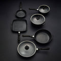 • Comprehensive set comes equipped with 2 x Frypans, 1 x Saucepan with Glass Lid, 1 x Casserole with Glass Lid, 1 x Grill Pan, and 1 x Saute Pan with Glass Lid