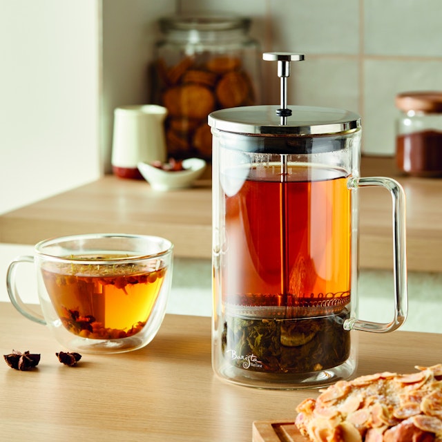 Consider filling your cabinet with a durable teapot, an airtight canister for storing beans or leaves, a precision scale, a quality grinder for fresh coffee grounds, and the proper brewing equipment (such as a French press or pour-over set for coffee, and an infuser for loose-leaf teas).